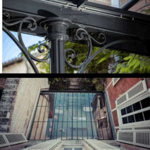 Structure d’acier et de verre, un petit jardin d’hiver pour le plaisir de ses propriétaires.